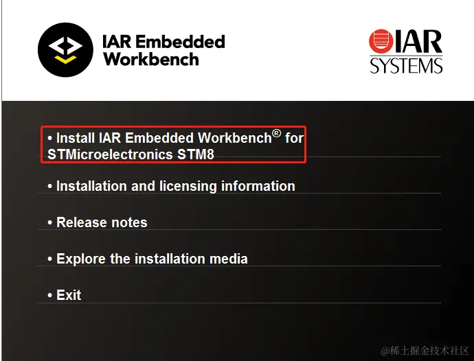 选择“Install IAR Embedded Workbench for STMIicroelectronics STM8”