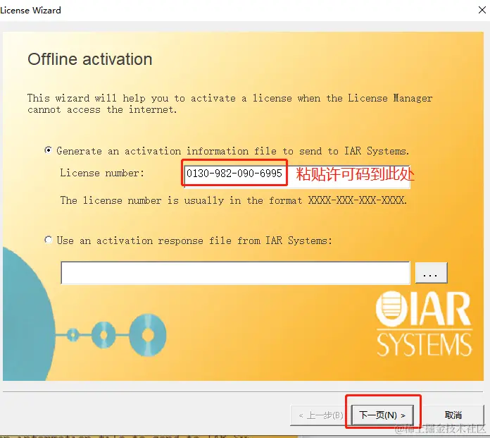 5.回到“离线激活界面”界面,粘贴注册码,点击“下一步”