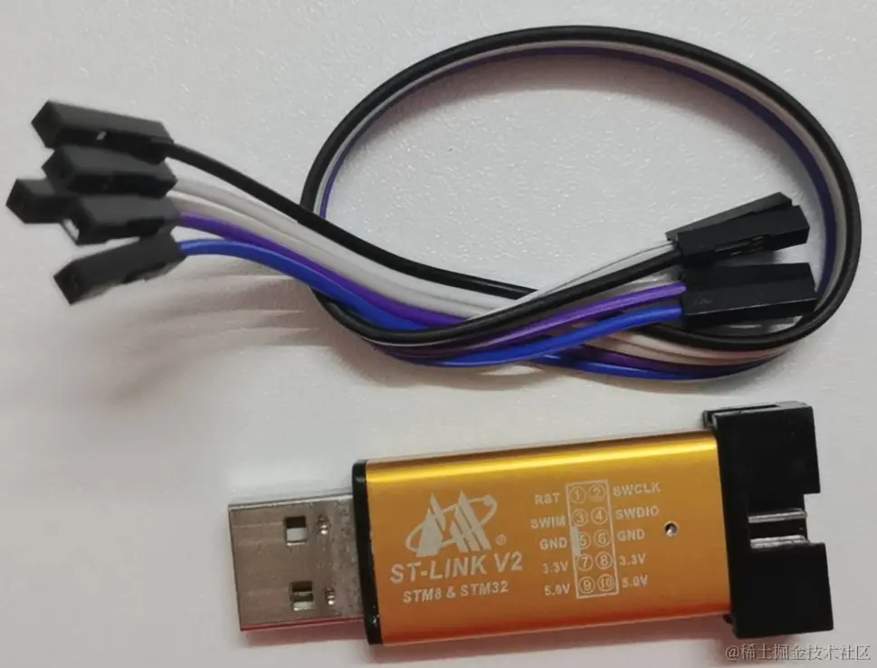 比较通用的STM8的烧录器是ST-LINK V2. 无际单片机编程使用的烧录器如下图所示: