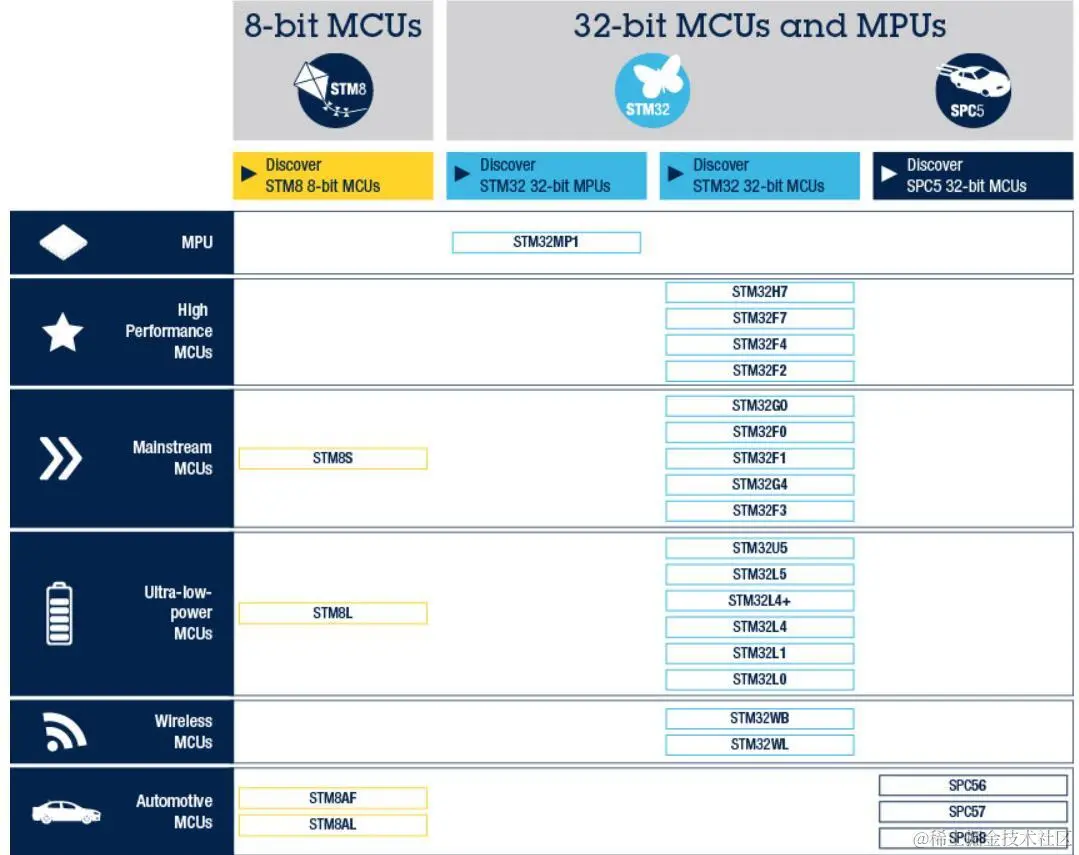 除了这些以外呢,ST的产品线也很丰富,基本高中低端的都有相应的型号解决不同的产品需求。