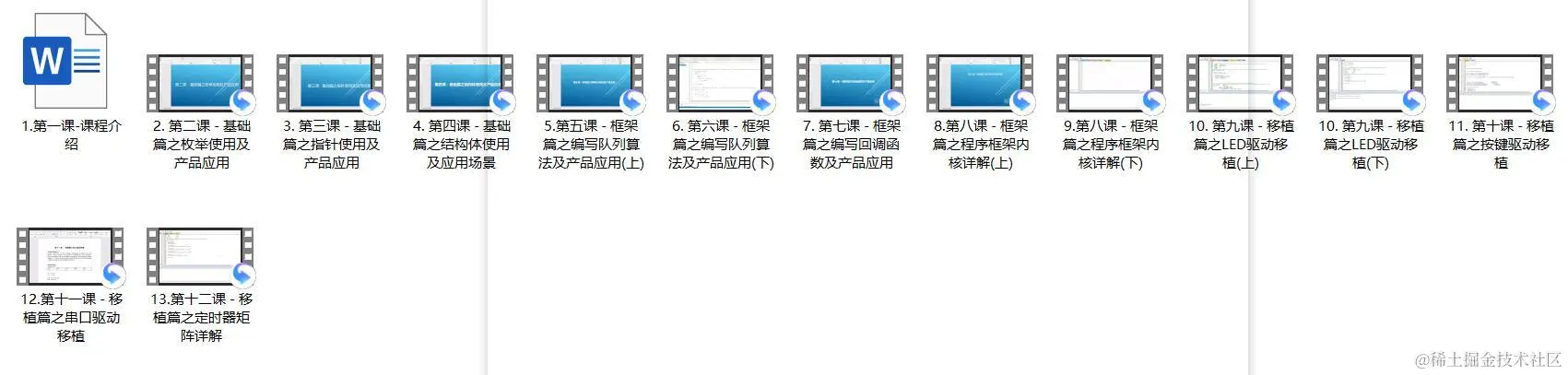教程讲了指针、结构体、回调函数、任务管理、队列这些高级的应用。