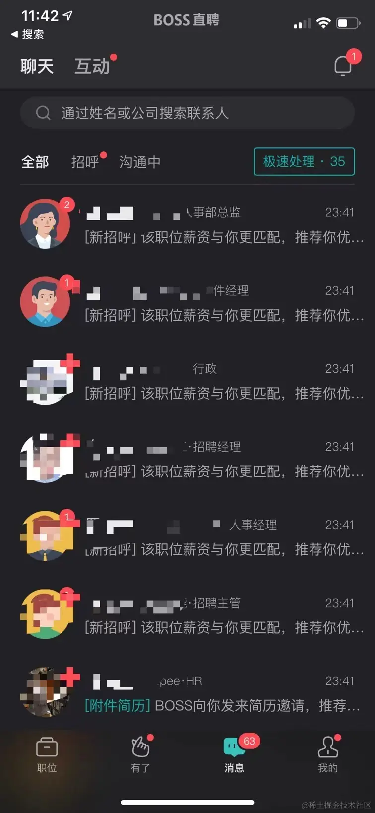 印象中我从2017年开始就没更新和投放过简历,这是每天主动找我的HR。