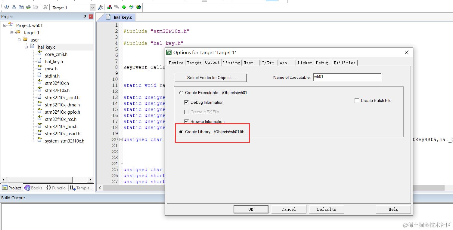 把需要生成lib的.c文件添加进来,这我需要把我按键功能模块代码生成lib,所以添加hal_key.c。