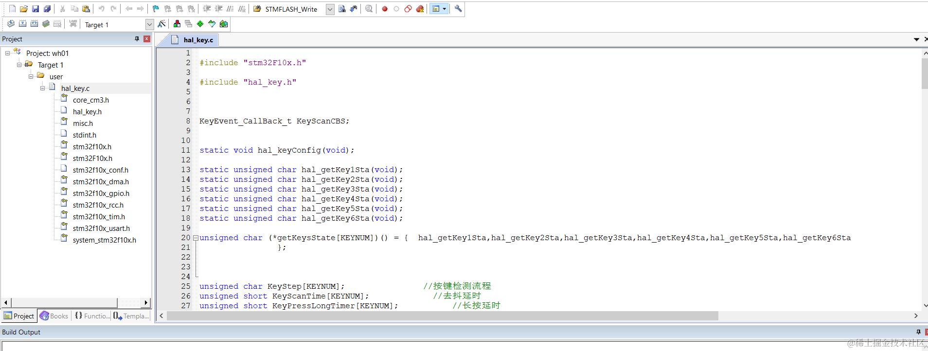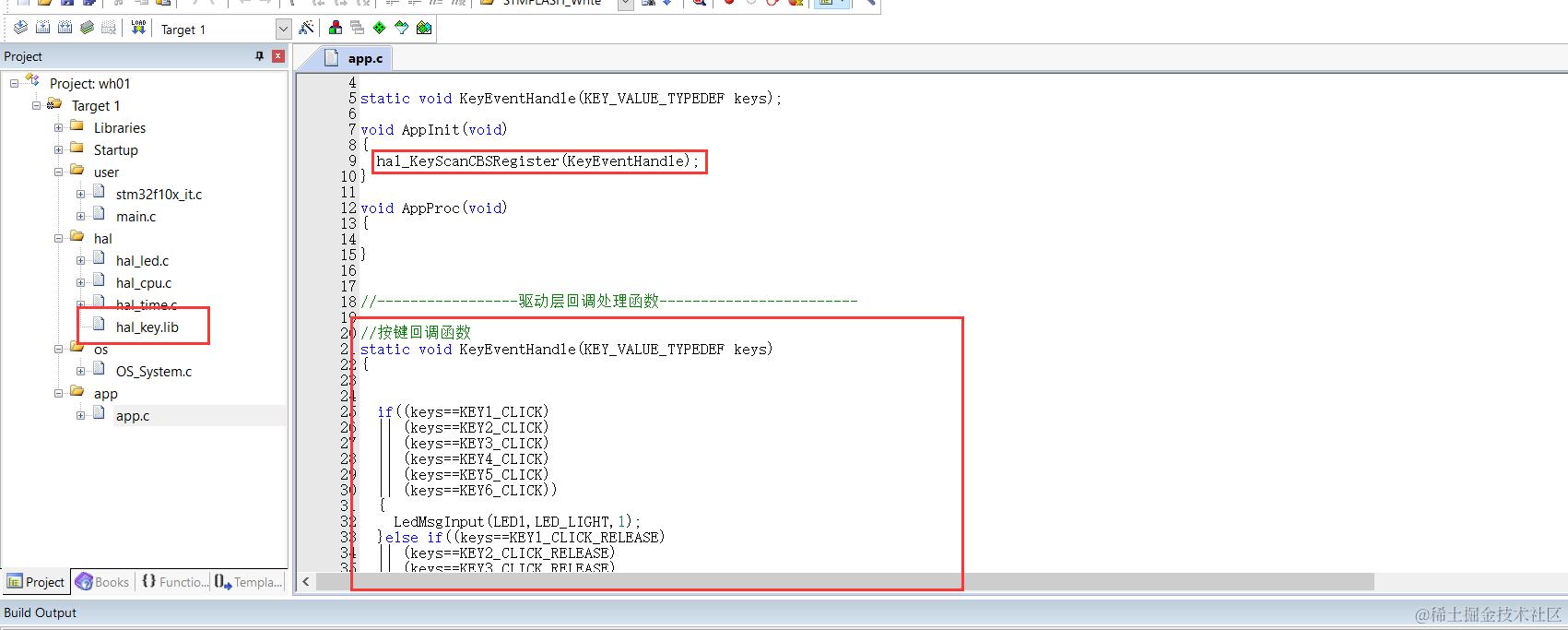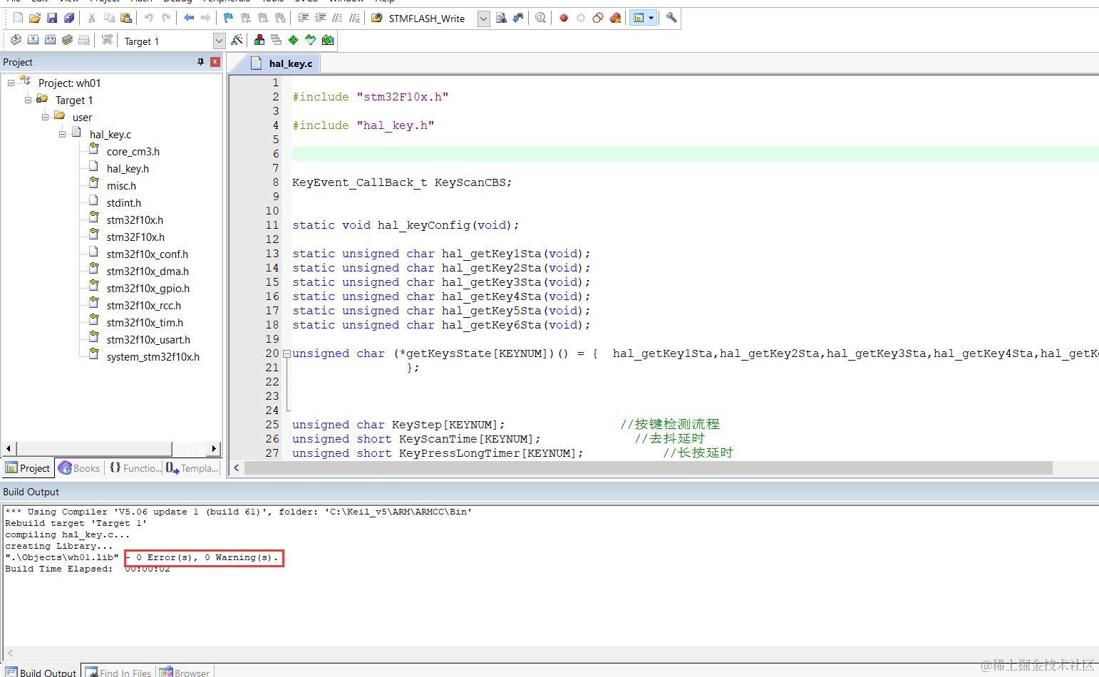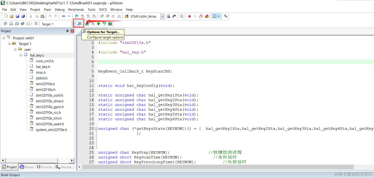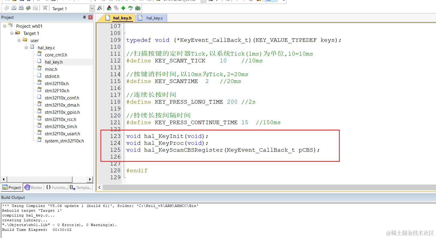下面是用keil把我们代码生成.lib的方法,我用我们无际单片机编程的wifi报警主机项目按键功能模块举例。
