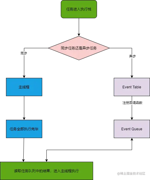 优先执行同步代码,异步代码进入任务队列(其中分为 宏任务 和 微任务)