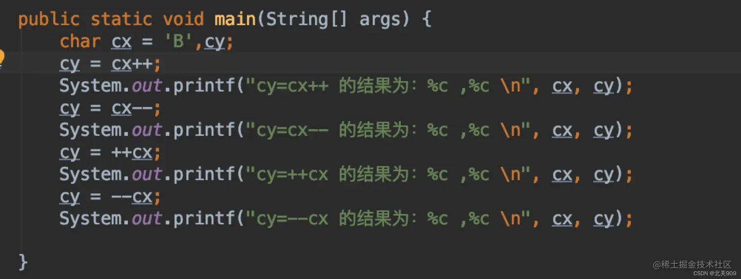 注意:char类型也可以++或--操作