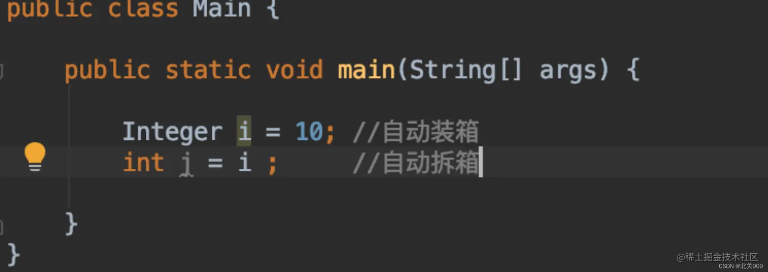 int j = i ; 即为自动拆箱,拆箱过程会转化为int j = i.intValue();