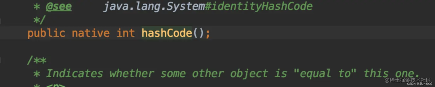 该方法通过对象的内存地址(物理地址),由hash函数计算得到hashCode。由此我们可以看到,Object equals()比较的是俩个对象的内存地址,Object hashCode()方法是通过对象内存地址计算hashCode ,因此可以保证,equals()相等的情况下,hashCode一定相等。