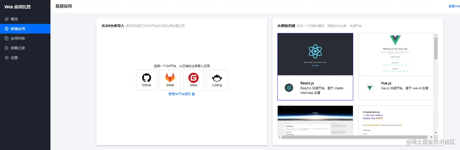 通过云开发 Webify管理站点,其可直接引入Git相关网站