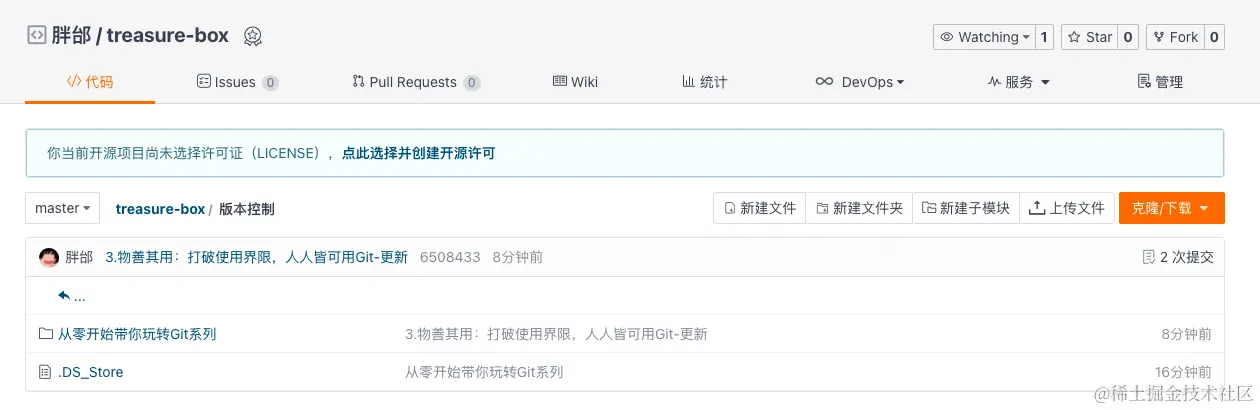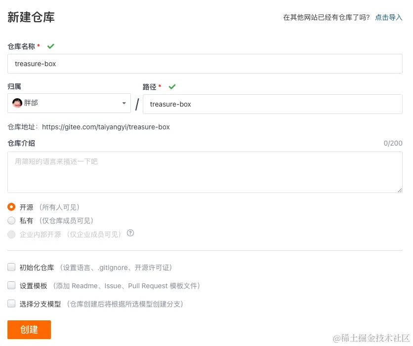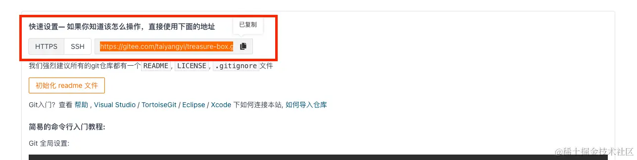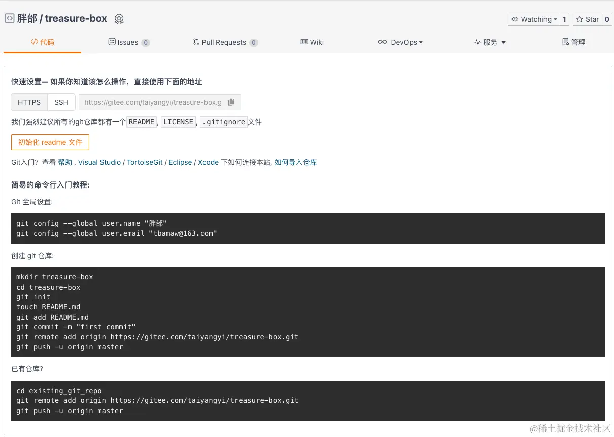 1. 使用 github/gitee创建远程仓库 treasure-box(百宝箱)