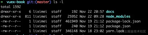 # drwxr-xr-x 6 liximei staff 192 Nov 22 20:57 docs