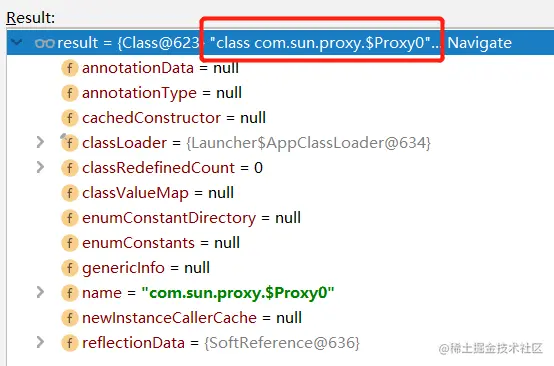 和源码中看到的规则一样,是一个Class为$Proxy0的神秘对象,再看一下代理对象的Class的详细信息: