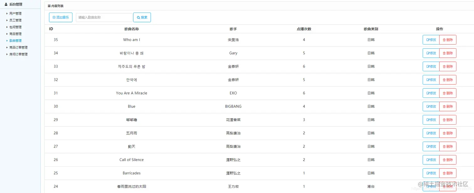 1.增删该查歌曲(类别:固定死,歌手,点唱次数)