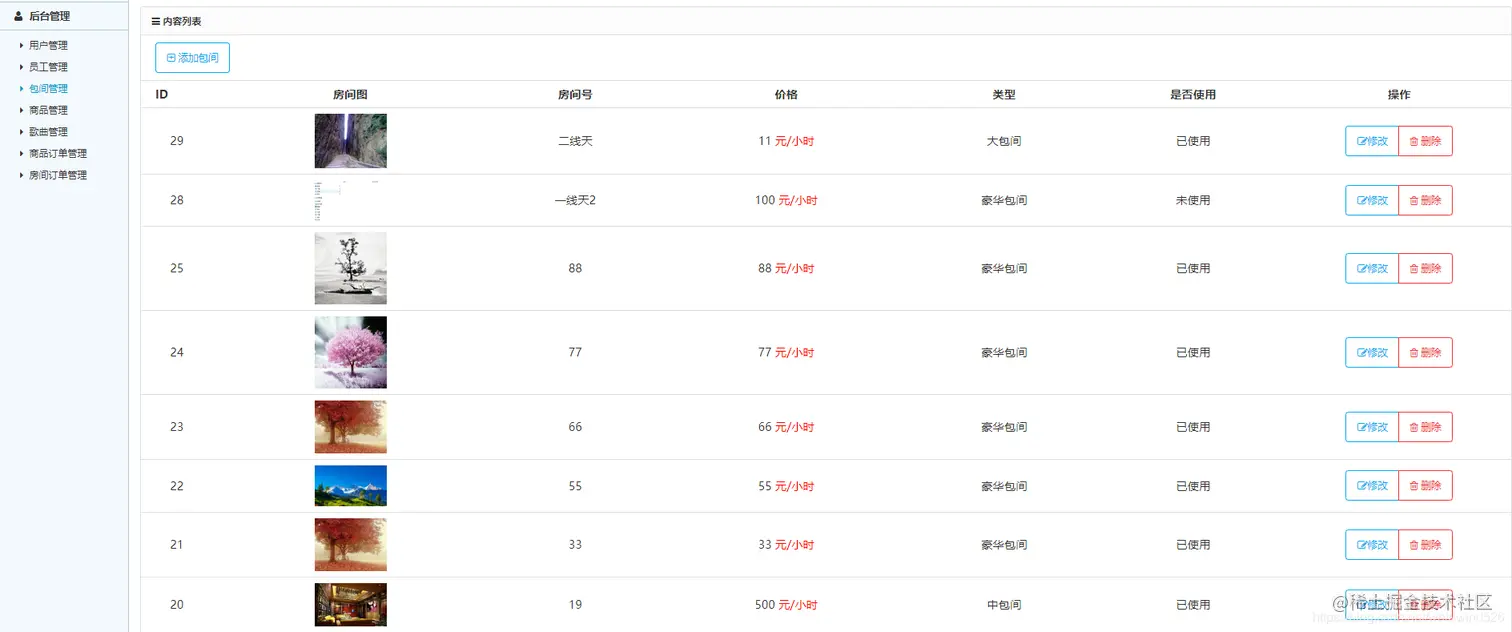 包间类型分为四个等级,分别为:豪华包间、大包间、中包间、小包间。根据包间编号可以查询包间的基本信息。