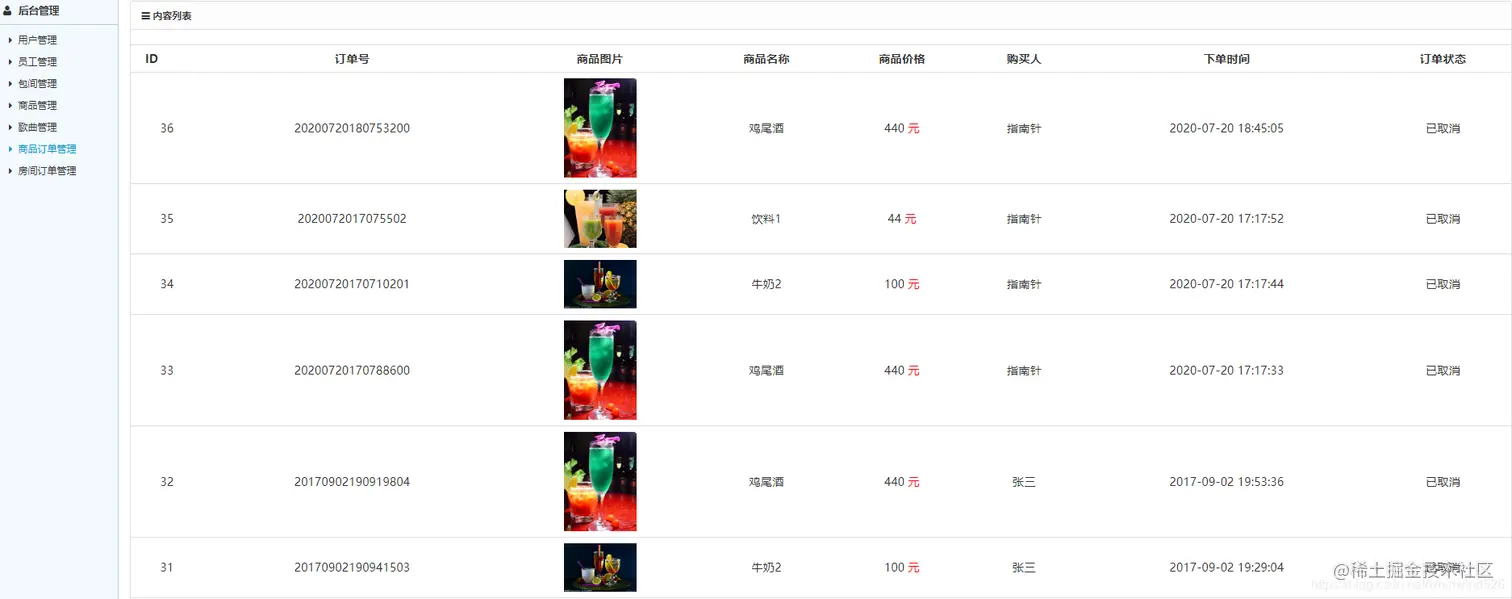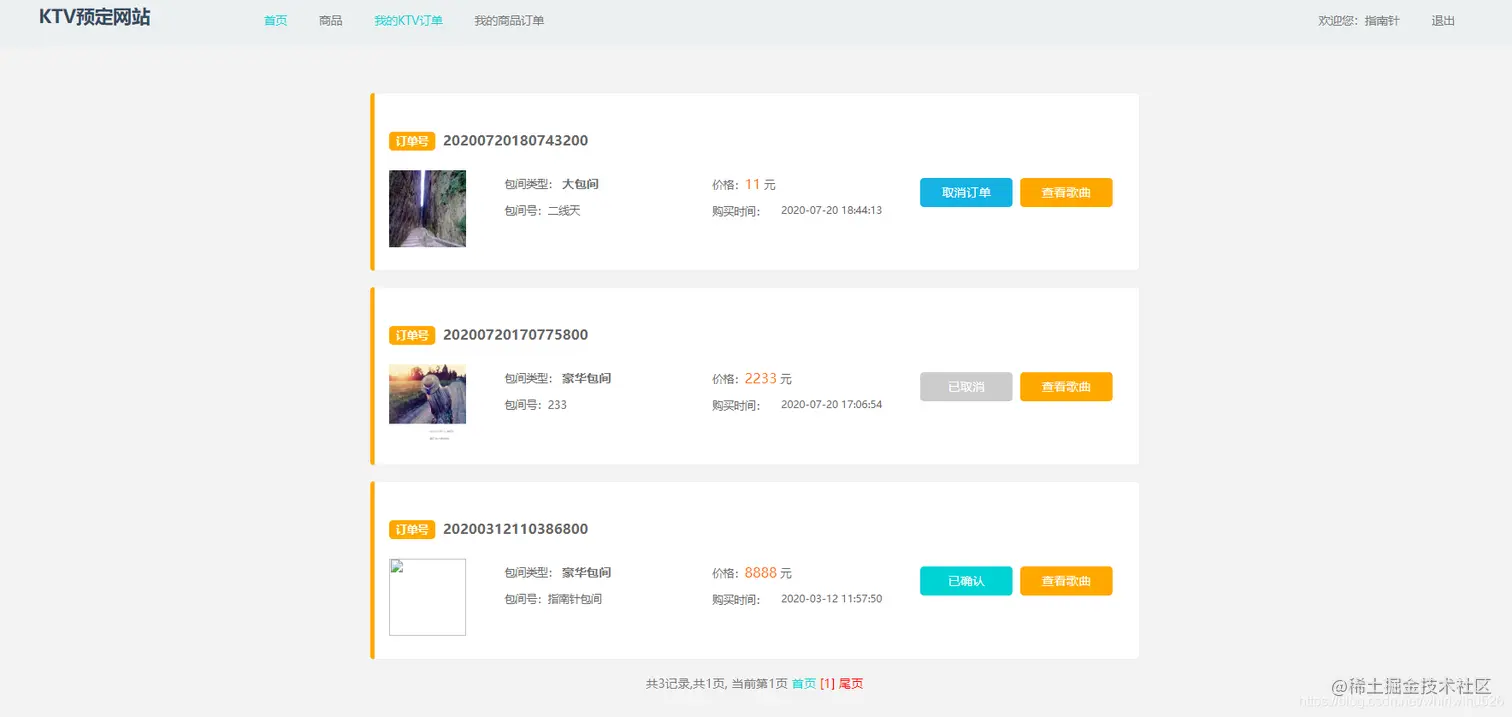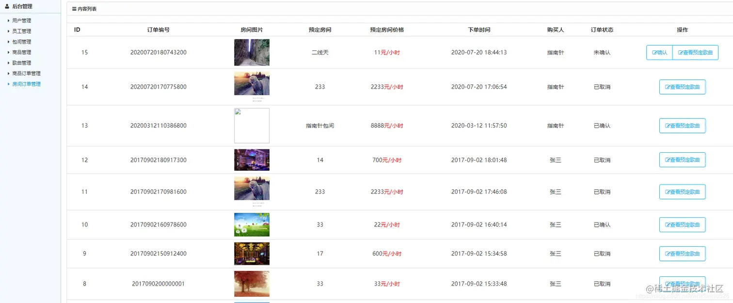 (一) 预定管理模块(分成ktv订单和商品订单)