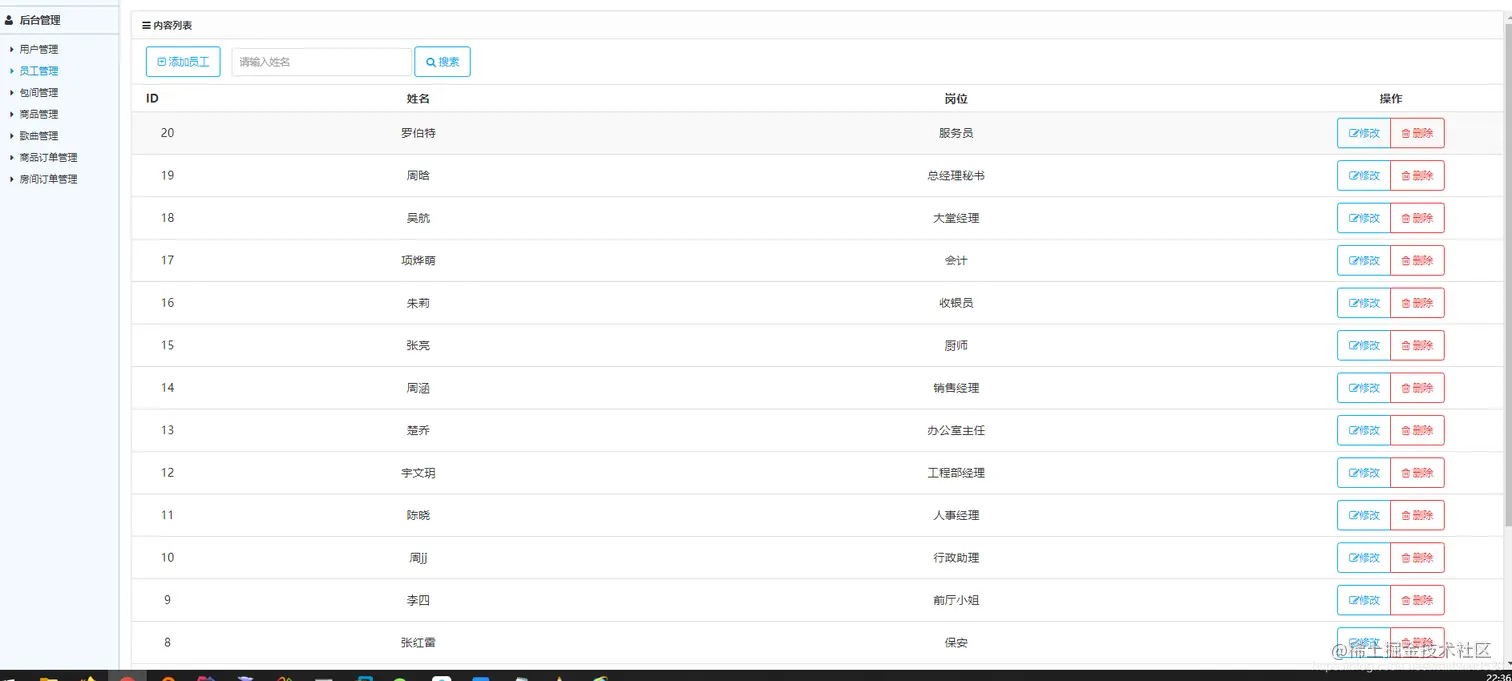ktv预定管理系统功能主要包括:预定管理模块、员工管理模块、包间管理模块、商品管理模块、歌曲管理模块、前台点歌模块。
