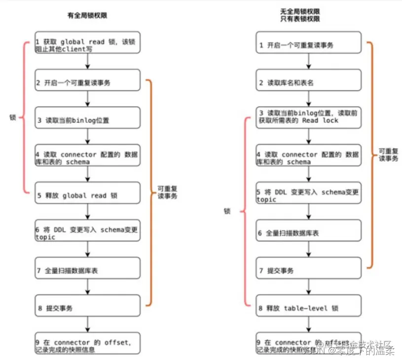 大部分用户使用的场景都是全量 + 增量同步,加锁是发生在全量阶段,目的是为了确定全量阶段的初始位点,保证增量 + 全量实现一条不多,一条不少,从而保证数据一致性。