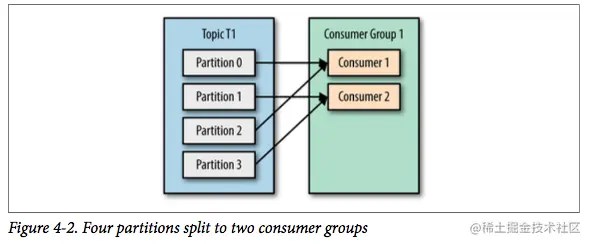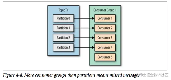 但如果我们继续增加消费者到这个消费组,剩余的消费者将会空闲,不会收到任何消息。