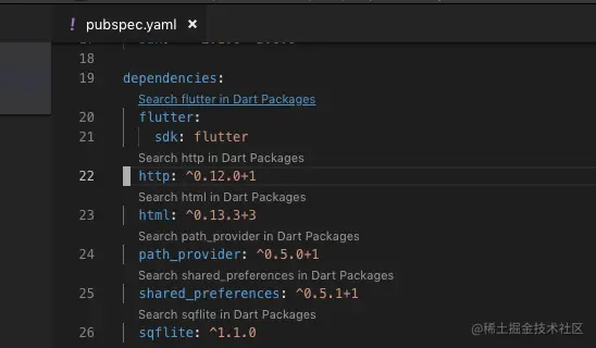 Pubspec依赖性搜索涵盖了与前一个扩展完全不同的使用情况。它帮助我们仅仅通过点击软件包的名称或使用命令来搜索软件包。