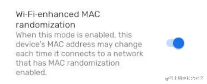 从 Android 8 开始,Google 开发人员使使用随机 MAC 地址成为可能。但是直到Android 11,MAC 随机化的默认状态才允许用户启用该功能。为了使其更具吸引力,Android 11 上的 MAC 地址随机化是基于网络的(每个 SSID)。