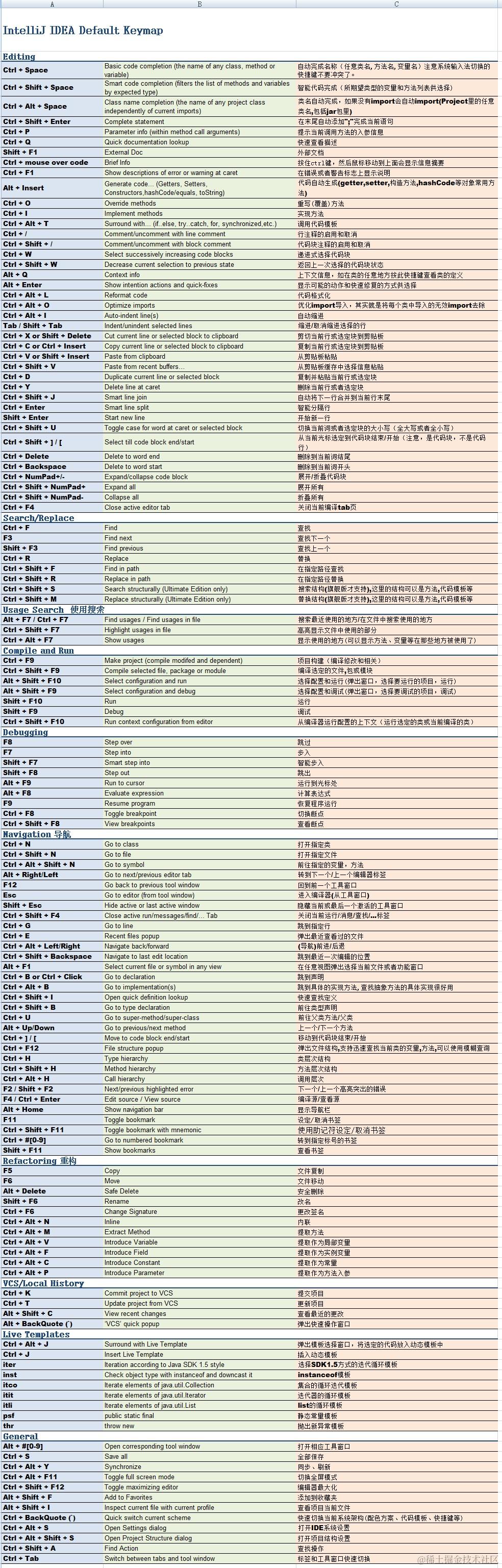 IntelliJ IDEA快捷键 Hanson 2022-02-23 75 阅读1分钟 1.IntelliJ IDE快捷键可以改 成eclipse的 (自己百度) 2.也可以用现原有的 (推荐) 下面就是快捷键表 \