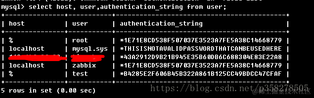 select host, user,authentication_string from user;