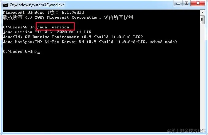 在弹出的窗口上输入 java -version,出现如下图内容表示安装成功!