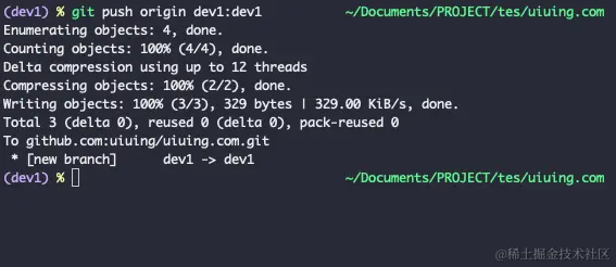 此命令可能需要再次输入你的 Github 用户名和密码,密码为隐藏数据,输入时看不到。推送成功后执行 git branch -avv 查看分支情况: