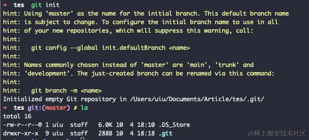 它会把当前所在目录变成一个本地仓库,因为有 GitHub 的存在,这个命令在我们的生产生活中用到的次数应该是零,除非你想费时费力自己搭建服务器。操作截图如下: