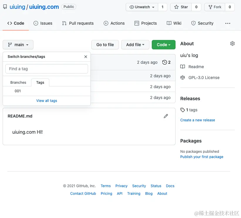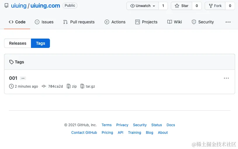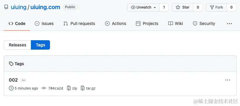 我们到浏览器上打开仓库主目录,可以查看 releases 和 tags :