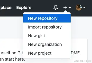 首先,打开 GitHub 注册个人账户并登录。登录后,在个人主页的右上角点击 New repository 创建新的仓库: