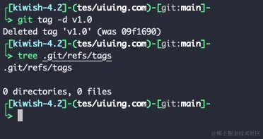 执行 git tag -d [标签名] 删除本地标签,标签文件也会被删除: