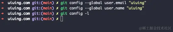 这两个命令设置你的身份信息如下图。git config -l 可以查看配置信息(就不展示截图了):