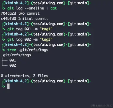 当我们执行 git tag [标签名] 创建本地标签后,在仓库主目录的 .git/refs/tags 目录下就会生成一个标签文件: