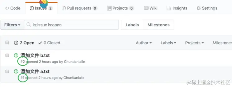 写好两个 issue,前面说过的,组长仓库里的 issue 不会出现在组员仓库中