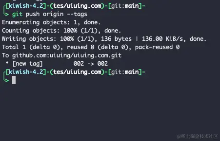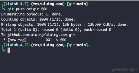 如果你一口气创建了 6 个标签,当然啦,这种情况很少发生,可以使用 git push origin --tags 命令将全部本地标签推送至远程仓库: