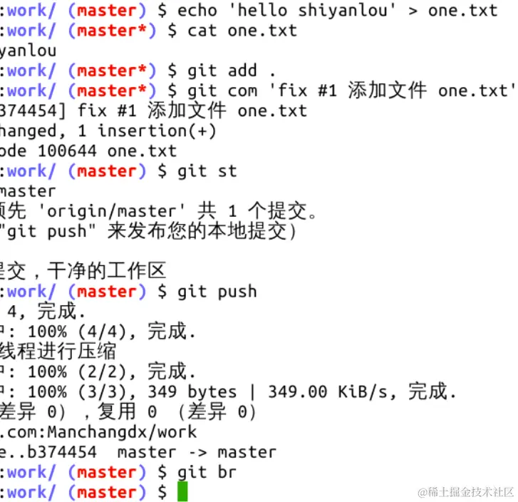 创建文件,添加到暂存区,提交,查看本地仓库分支状态: