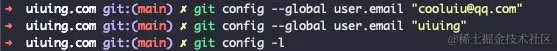 user.email:写入你自己注册 GitHub 账号的邮箱user.name:你自己的 GitHub 账号名字
