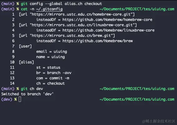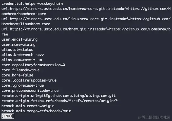 完成后,系统自动生成 Git 的配置文件,就是主目录中的隐藏文件 .gitconfig :