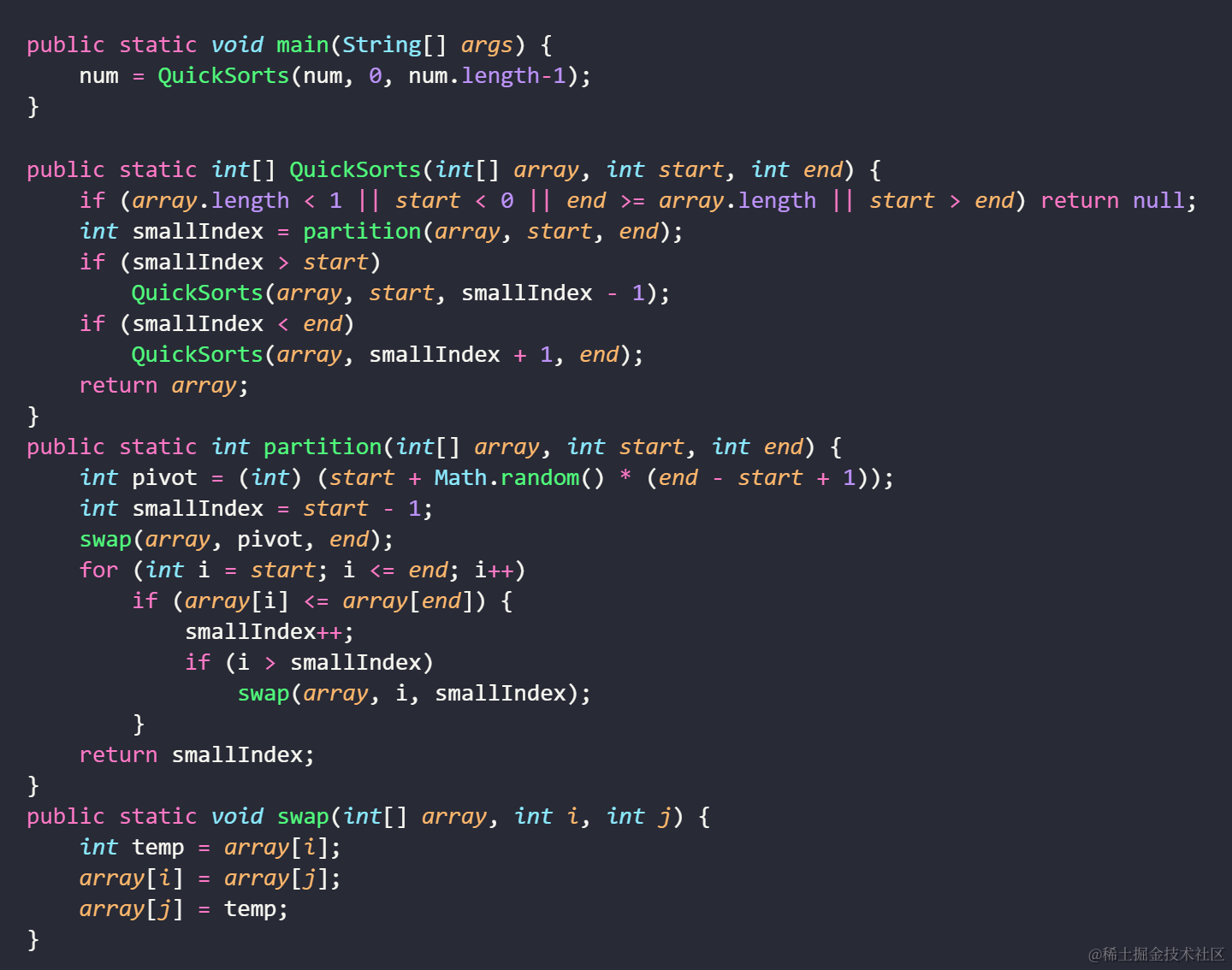 - 2:重新排序数列,所有元素比基准值小的摆放在基准前面,所有元素比基准值大的摆在基准的后面(相同的数可以到任一边)。在这个分区退出之后,该基准就处于数列的中间位置。这个称为分区(partition)操作