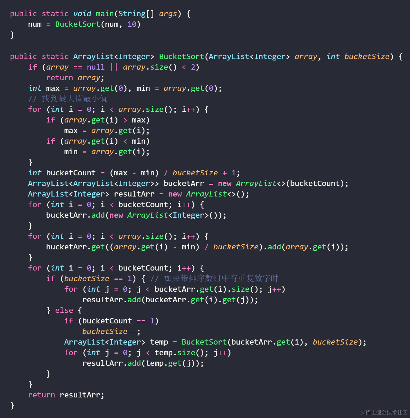 - 1:人为设置一个 BucketSize,作为每个桶所能放置多少个不同数值(例如当 BucketSize==5 时,该桶可以存放{1,2,3,4,5}这几种数字,但是容量不限,即可以存放 100 个 3);