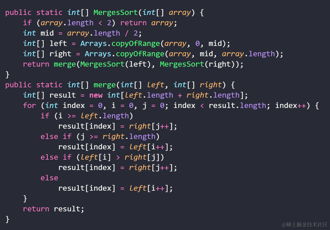 - 3:将两个排序好的子序列合并成一个最终的排序序列