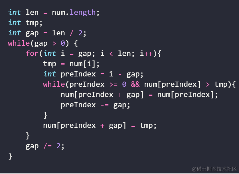 - 3:每趟排序,根据对应的增量 ti,将待排序列分割成若干长度为 m 的子序列,分别对各子表进行直接插入排序。仅增量因子为 1 时,整个序列作为一个表来处理,表长度即为整个序列的长度。