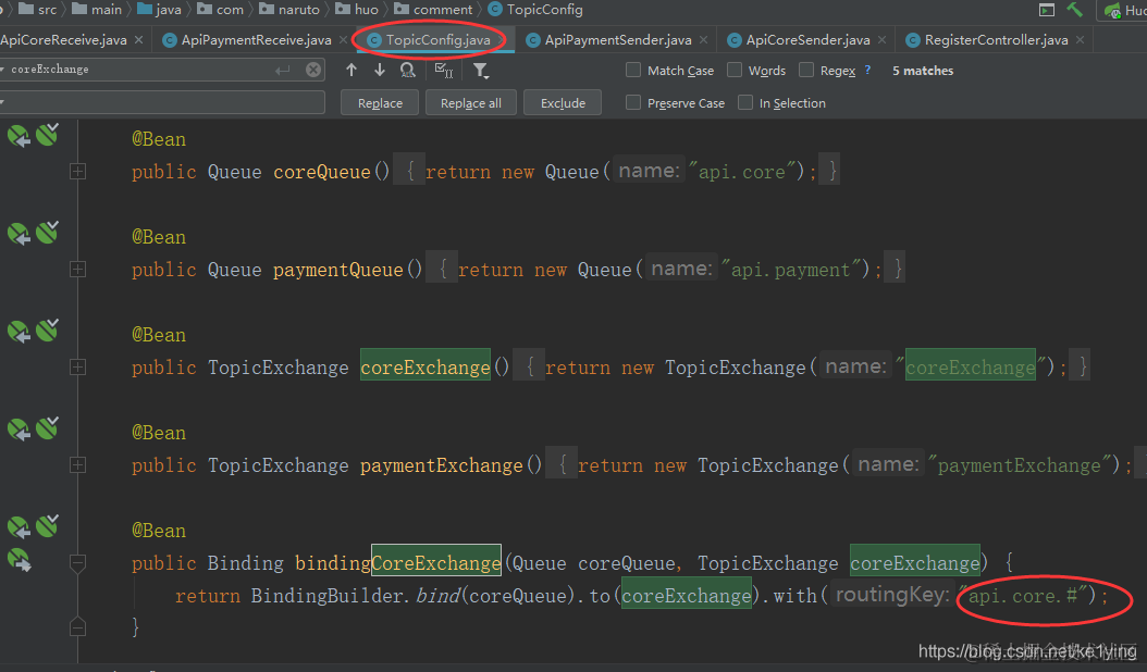 rabbitmq集成springboot一些注意事项 神灭龙魔导士 2022-02-23 48 阅读1分钟 1.此处配置rabbitmq交换机,“api.sore.*”和“api.sore.#”的区别就是,*只能向下匹配一层路径。#能匹配多层。如果用*则图二的多层路径就不能匹配成功。调用rabbit失败。 最后感谢这位博主:www.cnblogs.com/skychenjiaj…