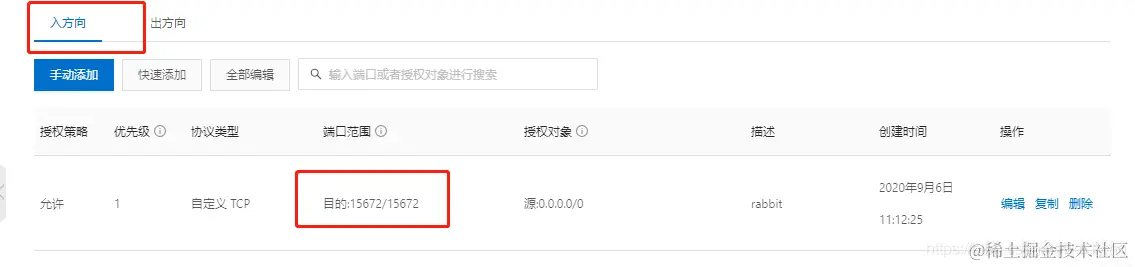 1、一定要去阿里云配置安全端口,否则无法访问。(另一个血泪坑5672也要配置,不然项目里访问不上,,一开始只配置了15672,然后找bug一下午,暴风哭泣!!!!!!!!!)