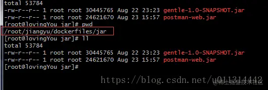 我是用 rz 命令直接选择 jar 上传到我存放 jar 的目录:/root/jiangyu/dockerfiles/jar