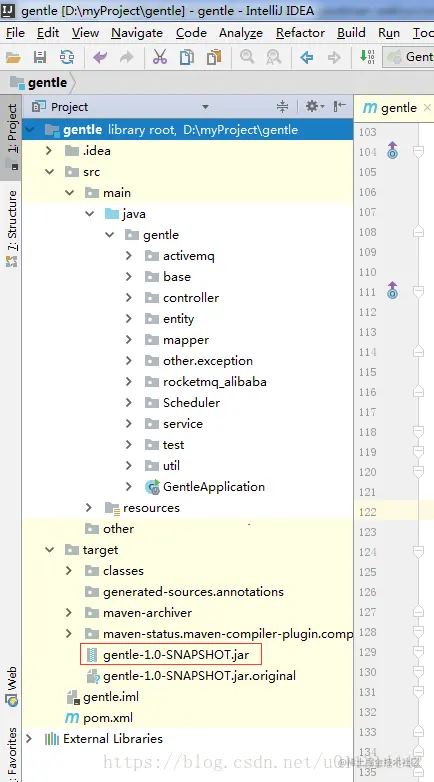 1. 把要部署的工程打成一个jar包。(我的工程叫 gentle )