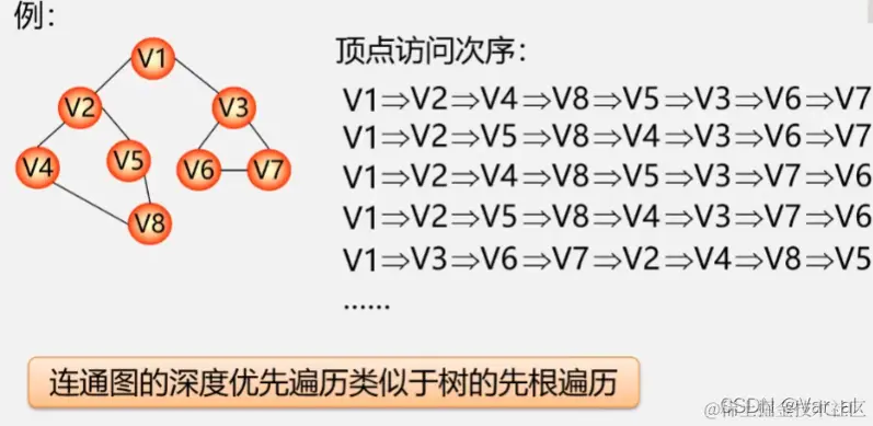 如果没有,就再退回一步进行搜索,重复上述过程,知道连通图中所有顶点都呗访问过为止。