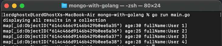 fmt.Println("displaying all results in a collection")