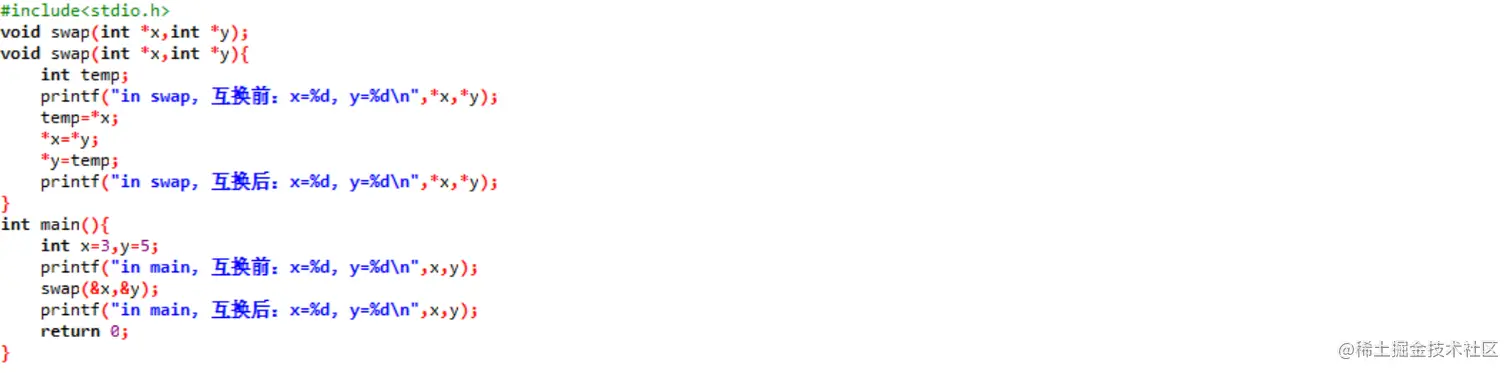 使用指针交换两个变量的值(传址)